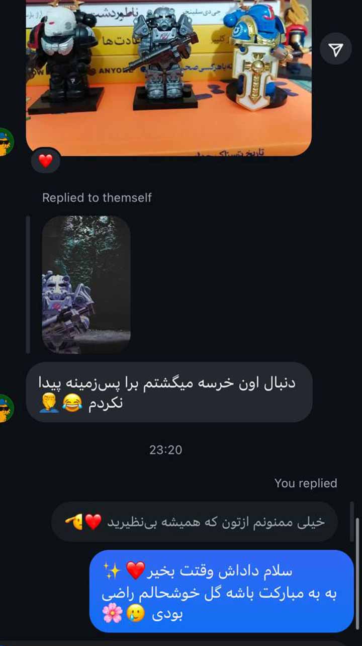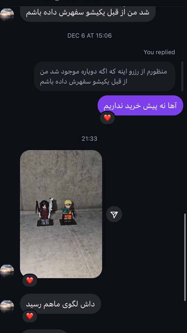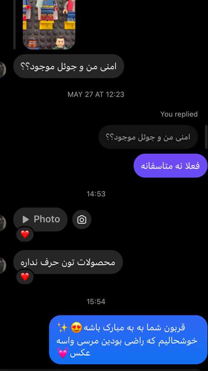 در این صفحه، اسکرین شات پیام عزیزانی که لطف داشتن و از سفارشات خودشون برای ما در شبکه های اجتماعی عکس فرستادن قرار دادیم. این گالری به مرور زمان اضافه و تکمیل می شه